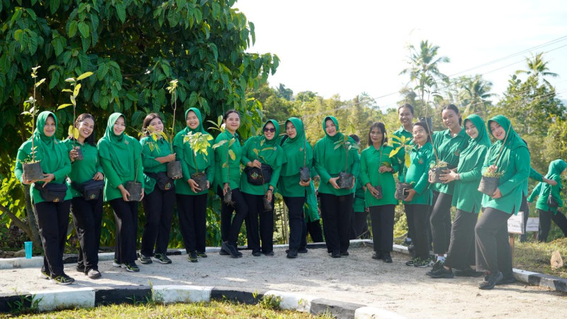 Puluhan anggota Persit antusias menanam pohon yang punya nilai ekologis dan ekonomi bagi warga Fakfak.